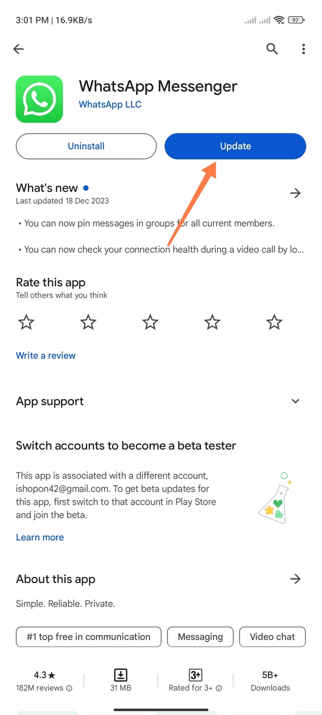 ১. বন্ধুরা কাজটি শুরু করার আগে আপনারা প্লেস্টোর থেকে Whatsapp নামিয়ে নিবেন। যাদের নামানো আছে তারা আপডেট করে নিউ ভার্সনের Whatsapp টি ইন্সটল করে নিবেন।