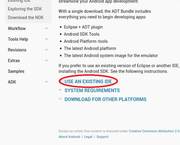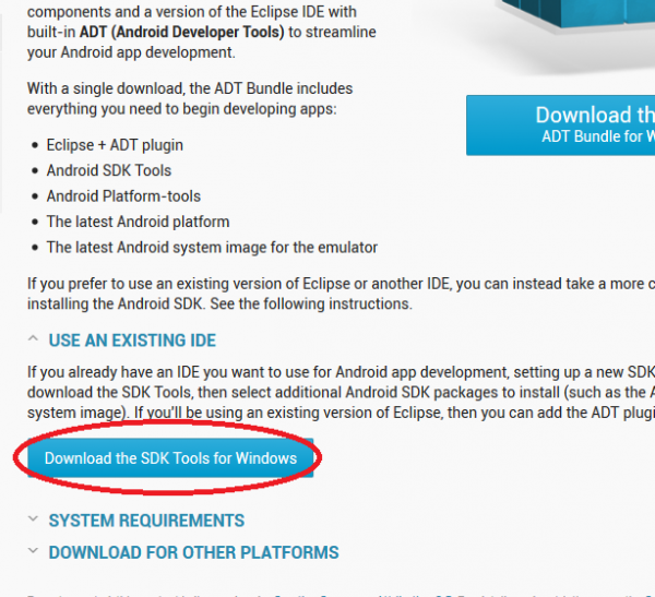 এবং Google's Android SDK (http://developer.android.com/sdk/index.html) এই দুইটা ডাইউনলোড করে ইন্সটল করুন। যদি আগে থেকেই ইন্সটল থাকে তবে দরকার নেই। ( বিঃদ্রঃ জাভা আগে ইন্সটল করে নিবেন নাহলে Android SDK ইন্সটল হবে না )