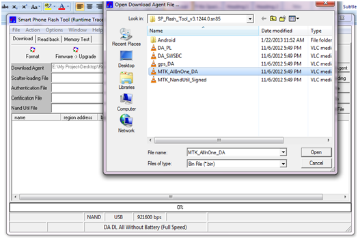 Open Download Agent and select MTK_AllinOne_DA