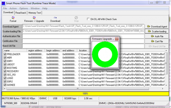 Click Firmware->Upgrade and connect USB cable with mobile without battery