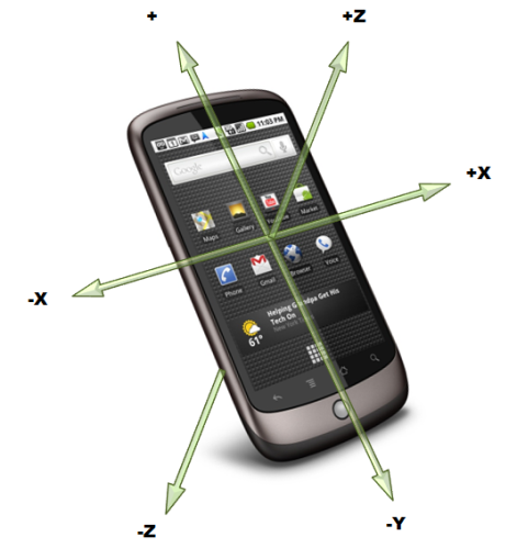 একটি ডিভাইসের উপর আপতিত মধ্যাকর্ষন বল ব্যতীত তিনটি অক্ষের (x, y, z) প্রতিটির ত্বরণ বল m/s2 এককে পরিমাপ করে। একটি একক অক্ষ বরাবর ত্বরণ পর্যবেক্ষন (Monitoring acceleration along a single axis) করে।
