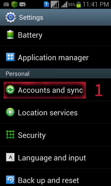 ১. প্রথমে আপনার সেটিং এ যান এবং 'Account and Sync' তে ঢুকুন (উপরের চিত্রের মত) ।