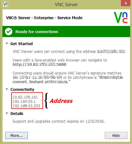 Note: VNC Server এর Connectivityতে একাধিক IP address থাকতে পারে তাই Connect না হলে অন্য IP address গুলো ব্যবহার করুন।