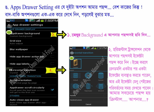 ঙ/ Apps drawer Setting: এই ফিচারটার দুইটি কাজের অপশন সম্পর্কে আর বলতে হবেনা, নিচে দেখুন-