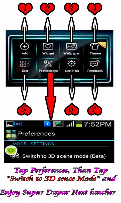শেষ হল ওই পর্ব, এবার শুরু করেন নতুন কারিগরি । ধরুন এত সময় Just নেক্সট লাঞ্চার নিয়ে কথা বলেছি, এখন কথা বলব তার 3D Site নিয়ে । আপনার Smart Phone এর Home Scrieen এর খালি জায়গায় নিচ হতে উপরের দিকে একবার Swape করুন, দেখবেন নিচের ছবির মত একটা উইন্ডো ওপেন হবে-