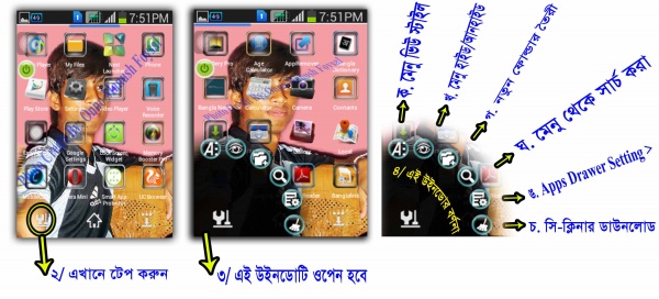 ১/ Menu তে ট্যাঁপ করুন, Menu'র উইন্ডো ওপেন হবে, এবার নিচের Scrieen Short টা Follow করুন :