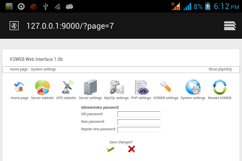 KSWEB Web Interface লিংকে ক্লিক করুন। এবং ডিফল্ট পাসওয়ার্ড ব্যাবহার করে লগইন করুন। (ডিফল্ট ইউজারনেইম admin এবং পাসওয়ার্ড admin)