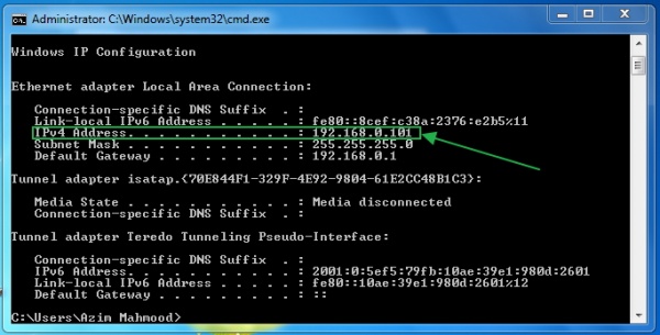 নিম্মেরমত উইন্ডো আসলে সেখানে ipconfig লিখে enter চাপুন