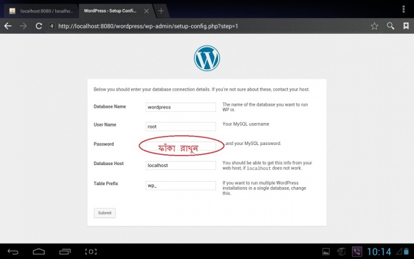 *** এই কাজে গুগল ক্রোমের তুলনায় অ্যান্ড্রয়েডে pre-installed Browser ফাস্ট মনে হয়েছে। অন্য Browser এ মাঝে-মধ্যে localhost আসেনা।