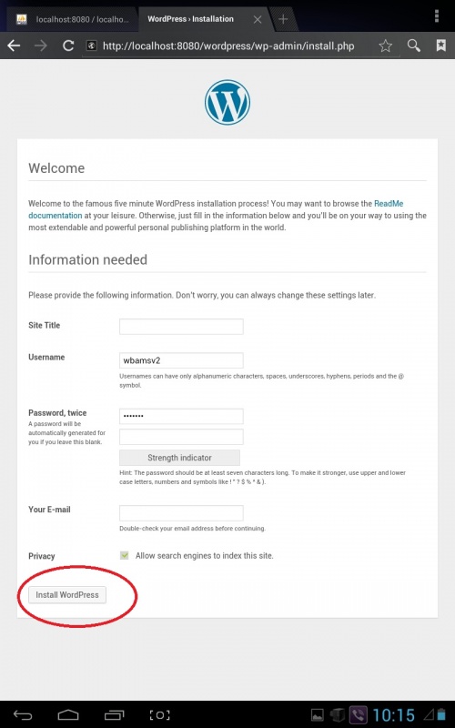 আসুন এবার অ্যান্ড্রয়েডে ওর্য়াডপ্রেস ইন্সটল করি-
