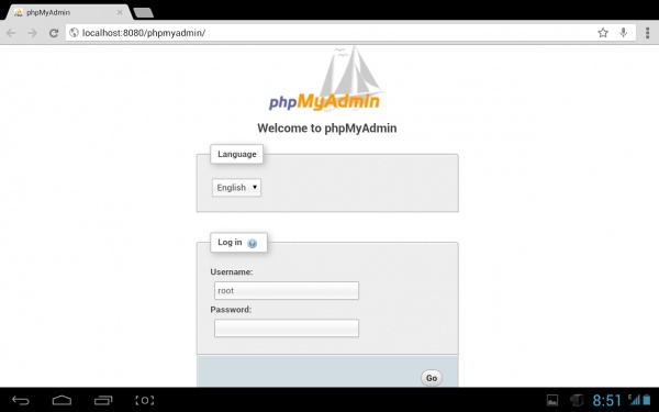 username এ root এবং password ফাঁকা রেখে Go ট্যাপ করুন।