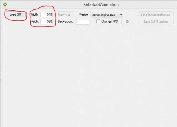 আপনার পছন্দের GIF ফাইল তৈরি হবার পর, Gif to BootAnimation সফটওয়্যারটি ওপেন করুন। [বিঃদ্রঃ- আপনার পিসির এন্টিভাইরাস "Gif to BootAnimation" সফটওয়্যারটিকে ভাইরাস হিসেবে সনাক্ত করে নষ্ট করে দিতে পারে, কিন্তু নিশ্চিত থাকেন এতে কোন ভাইরাস নেই, তাই "Gif to BootAnimation" সফটওয়্যার নিয়ে কাজ করার সময় এন্টিভাইরাসটি বন্ধ করে নিবেন] Gif to BootAnimation সফটওয়্যারটি ওপেন করুন। আপনার ফোনের রেজুলেশন অনুযায়ী রেজুলেশন ঠিক করুন এবং আপনার পছন্দের GIF ফাইলটি লোড করুন।