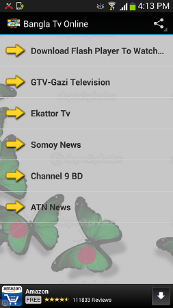 ১০. বাংলা টিভি অনলাইন: বাংলা টিভি অনলাইন একটি বাংলাদেশী এপস। এর মাধ্যমে ৩জি ব্যবহার করে চ্যানেল আই, চ্যানেল ৯, চ্যানেল ২৪ সহ বিভিন্ন বাংলা চ্যানেল দেখা যায়।