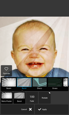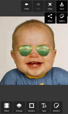 এডিটরের মেইন মেনু থেকে Effect সিলেক্ট করলে Unicolor, Vintage, Creative, Default, Soft, Subtle, Too Old নামের ৭টি ইফেক্ট অপশন দিয়ে ছবিতে নানারকম ইফেক্ট দিতে পারবেন।