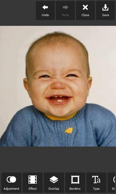 এখানে আপনি দেখবেন, Adjustment, Effect, Overlay, Borders, Type, Stickers নামে মোট ৬টি ফটো এডিটিং অপশন।