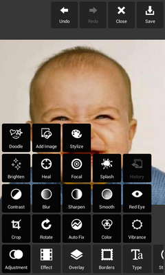 Adjustment সিলেক্ট করলে দেখবেনঃ Doodle (আঁকিবুঁকি), Add Image, Stylize, Brighten, Heal, Focal, Splash, History, Contrast, Blur, Sharpen, Smooth, Red Eye, Crop, Rotate, Auto Fix, Color, Vibrance নামের মোট ১৮টি অপশন। যারা ফটো এডিটর নিয়ে কাজ করেন তারা এদের নাম শুনেই বুঝবেন এগুলো দিয়ে কি করা হয়-বিস্তারিত লিখলাম না, চেষ্টা করে দেখুন - মজা পাবেন।