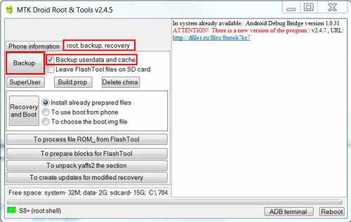 এবার root, backup, recovery ট্যাব এ ক্লিক করুন, যদি আপনার ইউজার ডাটা এবং Cache ফাইল ব্যাক আপ করার প্রয়োজন হয়, তাহলে backup user data & cache তে টিক দিন। আমার মতে এটা না করাই ভালো, শুধু শুধু ব্যাক আপ সাইজ বড় করা আর কি।