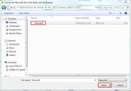 তারপর ব্যাক আপ ফোল্ডার থেকে md5 ফাইলটি সিলেক্ট করে দিন।