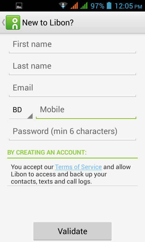প্রথমে Google Play Store https://play.google.com/store/apps/details?id=lifeisbetteron.com থেকে Libon সফটওয়ার টি ডাউনলোড করে ফোনে ইন্সটল করুন তারপর নিচের চিত্রের মত করুন। একবার রেজিস্টেশান করে ৩০ মিনিট কল করা যাবে। ৩০ মিনিট শেষ হয়ে গেলে আকাউন্ট ডিলেট করে আবার রেজিস্টেশান করলে আবার ৩০ মিনিট পাবেন। অথবা নতুন মোবাইল নাম্বার এবং নতুন ইমেইল দিয়ে রেজিস্টেশান করলে তো হবেই।