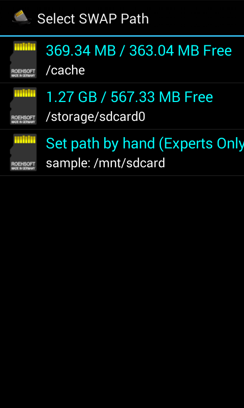 এখন আপনার cellphone যদি ROEHSOFT RAM Expander (SWAP) capable