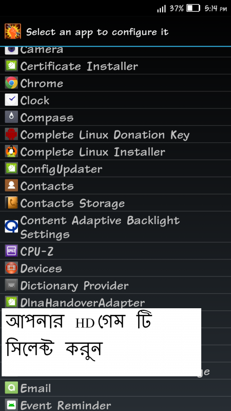 এবার আপনি যেই গেমটি খেলতে চান সেটিকে সিলেক্ট করুন দেখবেন একটি মেনু ।পথমে Enable custom setting for this app এখানে মার্ক করুন।