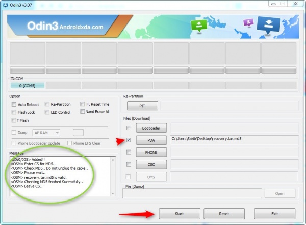 মেসেজ এ আপনার ডিভাইস এডেড দেখাবে। এবার PDA তে ক্লিক করে আপনার ডেস্কটপে রাখা রিকভারী সিলেক্ট করে দিন। তারপর স্টার্ট এ ক্লিক করুন।