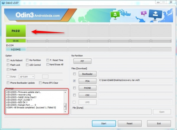 রিকভারী ইন্সটল শুরু হবে। রিকভারী সম্পূর্ন ইন্সটল হওয়ার পর গ্রীন সিগ্লেন এ পাস!! লিখা উঠবে।