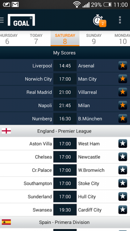 ৩. বাংলাদেশী সময় অনুসারে সকল ম্যাচের ফিক্সার এবং কোন টিমকে ফেবারিট হিসাবে সিলেক্ট করবার ব্যবস্থা।