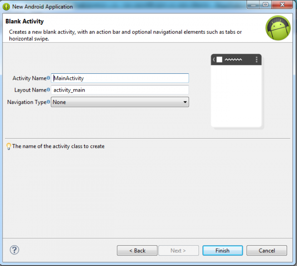 File>New>Android Application Project
