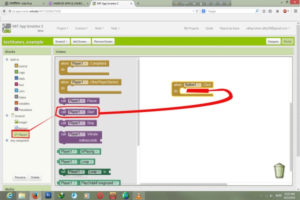 এখানে Player1 এ ক্লিক করে " Call player1 start " এ ক্লিক করে তা ধরে এনে আগের ব্লকটির মাঝখানে এনে ছেরে দিন তাহলে তা আগেরটার সাথে লেগে যাবে।