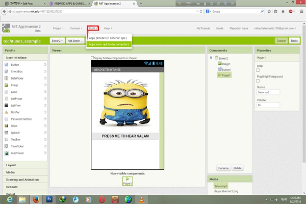 কিন্তু এটাকে এখন .apk ফাইল বানিয়ে কম্পিউটার এ সেভ করতে হবে। নিচের মত করুন..............................
