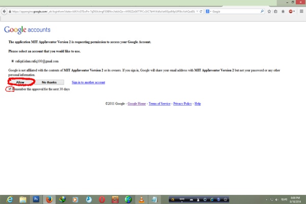 এইখানে বক্সটাতে টিক দিন এবং Allow তে ক্লিক করুন। এখন আপনি সরাসরি MIT App inventor 2 এর এপ্পস তৈরি করার পেজ এ চলে জাবেন। যা নিচের মত দেখতে