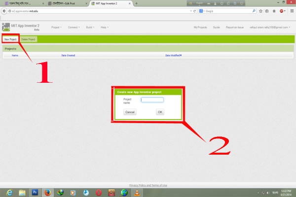 এখানে আমরা প্রথমে 1 চিনহিত বাটন New Project এ ক্লিক করব।