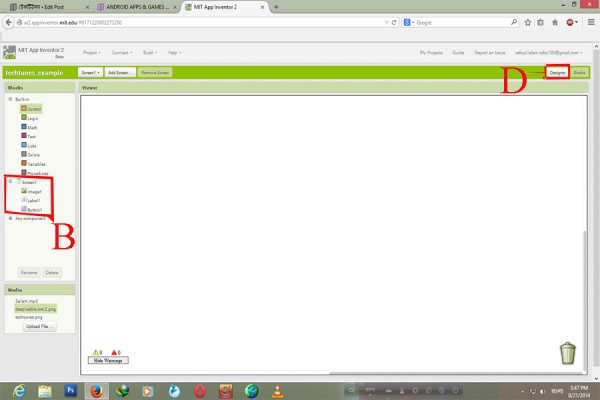 তারপর MIT App inventor 2 এর মেইন App তৈরির পেজে জাই। এখানে