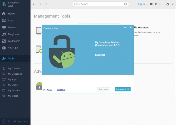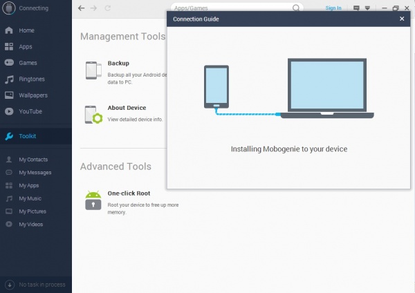 এখন Mobogenie সফ্টওয়্যারটির Toolkit অপশানটিতে যান এবং One Click Root এ ক্লিক করুন এবং অপেক্ষা করুন।