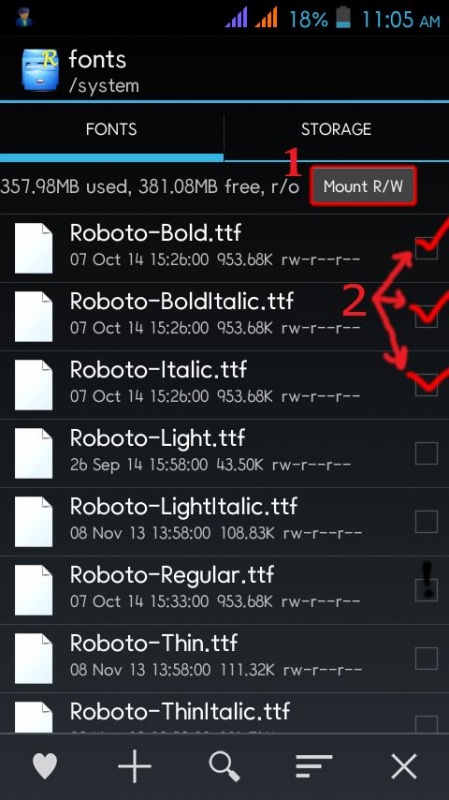 ২। ডান পাশের Storage TAB থেকে ডাউনলোড করা Font Folder এ যান । এখান থেকে Roboto Bold, Bold italic, italic কপি মারুন ।