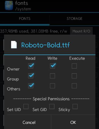 এটা করতে Font এর উপর tap করতে হবে । তারপর নিচের মতো Permission Change করতে হবে-