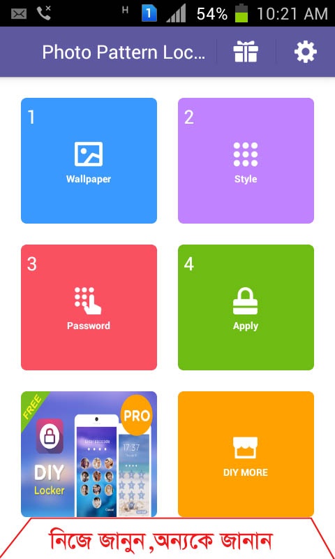 তো আজ কথা না বাড়িয়ে কাজে চলে আসা যাক আমরা অনেকে মোবাইলের নিরাপত্তা এর জন্য প্যাটান লক ব্যবহার করি, কিন্তু এই প্যাটেন লক যদি নিজের পছন্দের ছবি গুলো দিয়ে হয় তাহলে কেমন হয় মজার না। তাহলে আর দেরি কেন উপরের ছবির উপর ক্লিক করে Apps টি ডাউনলোড করে নিন আপনার Android এর জন্য।