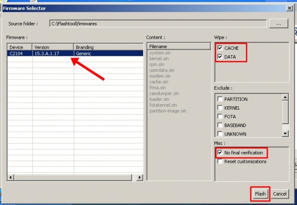 এবার বামপাস থেকে আপনার firmware টা সিলেক্ট করুন তারপর CACHE and DATA তে টিক দিন তারপর No final verification এ টিক দিন এবার নিচে থেকে Flash বটনে ক্লিক করুন।