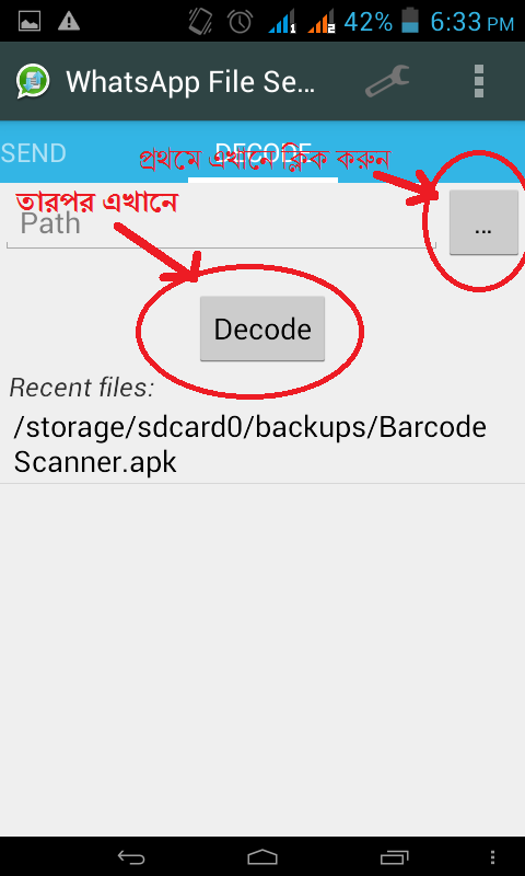 এইবার ডিকোড করার জন্নে “...” এর উপর ক্লিক করে যেইটা ডিকোড করতে চান সেইটা সিলেক্ট করে ডিকোড এর উপর ক্লিক করুন এইবার যেইখাতে ডিকোড করা ফাইলটি রাখতে চান সেই ফোল্ডার টি দেখিয়ে দিন ব্যাস কাজ শেষ। এইবার আপনার দেখিয়ে দেউয়া ফোল্ডার এ আপনি আপনার ফাইলটি পেয়ে যাবেন।
