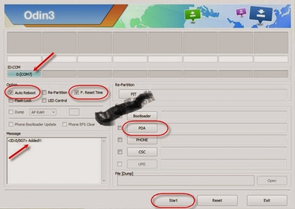 এইবার আসেন কাস্টম রিকভারি ইন্সটল করি। প্রথম অংশের মত ফোন Odin মোড এ করুন এরপর পিসিতে তে ফোন কানেক্ট করে Odin ওপেন করুন। Odin এ ফোন কানেক্ট হইছে কিনা ভাল মত দেখুন। যদি ঠিকঠাক মত কানেক্ট হই তবে PDA এ ক্লিক করে আপনার ডাউনলোড করা tar ফাইলটি সিলেক্ট করুন। start এ ক্লিক করুন ব্যাস কিছুক্ষণের মদ্ধে successful লেখা দেখাবে।