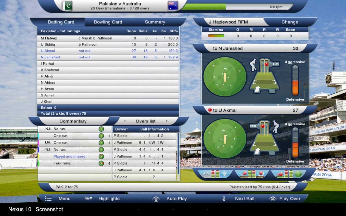 * Cup Modes: W Cup, Twenty Over Cup and Champions Cup modes.