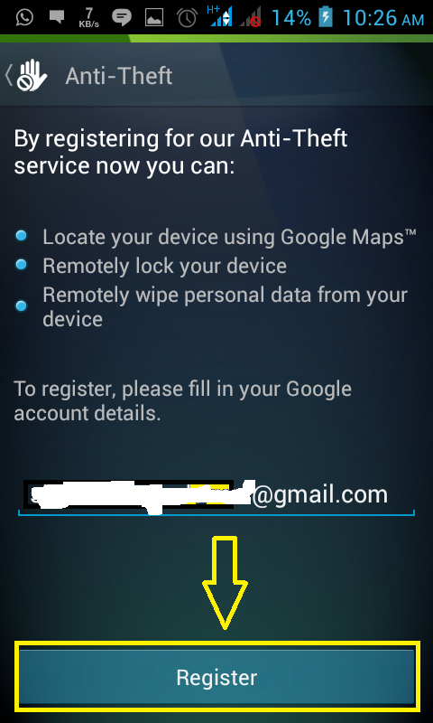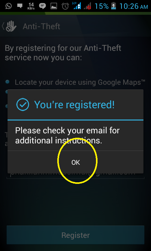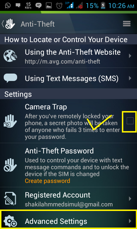 আপনি সফল ভাবে রেজিস্ট্রেশন করে ফেলেছেন। এখন এন্টি থেফ্ট অপশনে নিচের মত মেনু পাবেন