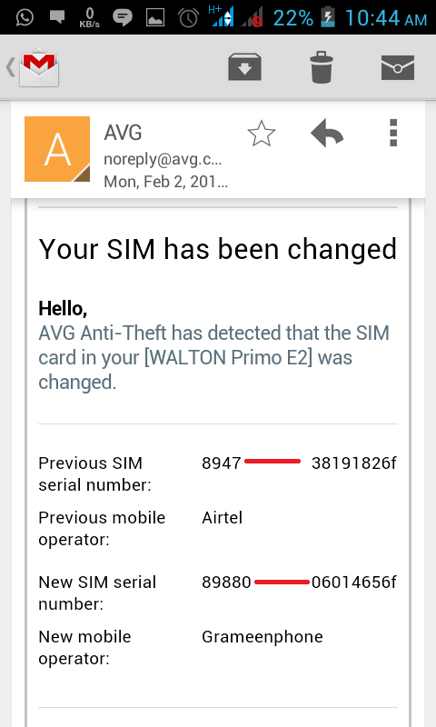 আর আপনার সিম চেন্জ করলে নিচের মত তথ্য আসবে। এখানে অপারেটর ও সিমের সিরিয়াল নম্বর পাবেন। যার মাধ্যমে সহজেই চোরকে ধরা যাবে।