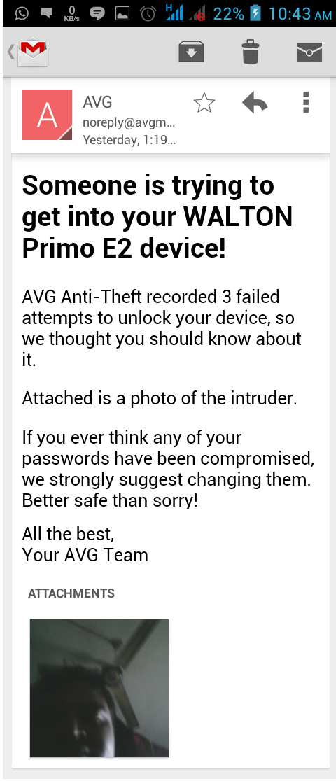 এখানে ক্যামেরা ট্রাপ এ টিক দিয়ে রাখুন । এবং নিচে পাসওয়ার্ড অপসন হতে একটি পাস ওয়ার্ড দিন এই পাসওয়ার্ড কি কাজে লাগবে তা পরে বলব। এতে করে যে পরপর তিন বার আপনার ফোনে ভুল প্যাটার্ন বা পিন দিবে ক্যামেরা গোপনে তার ছবি তুলে আপনার দেয়া মেইলে পাঠিয়ে দিবে। উদাহরন হিসাবে নিচের চিত্র দেখতে পারেন...