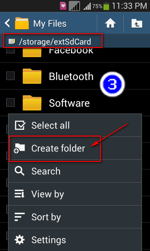 ৩/ এবার আপনার memory card এ ঢুকে ফোনের left bottom এ চাপ দিয়ে Create folder করুন।