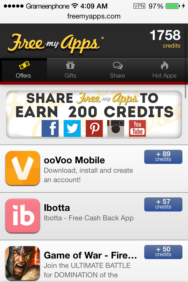 ★ ★ ★ এখন পর্যন্ত প্রায় ১৫ জনের মত freemyapps ইউজ করে ফ্রি কমপক্ষে $10 ডলারের iTunes Gift card পেয়েছেন বলে আমাকে ফেসবুকে জানিয়েছেন। আপনারা চাইলে ফেসবুকে পোষ্টটি দেখতে পারেন এখান থেকে।