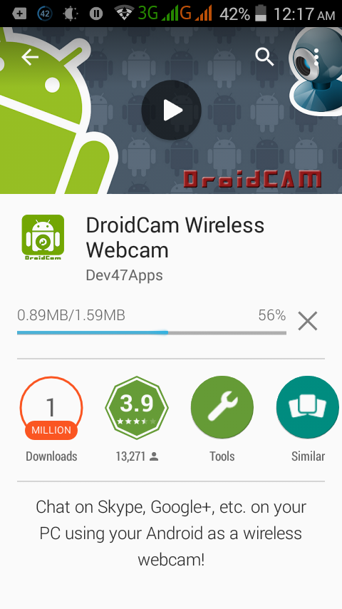 Step 1:আপনার স্মার্ট পোনে প্লে স্টোর বা এপেল এপস স্টোর থেকে droidcam wirless webcam free apps ।(size 1.59 mb)।download করে নিন।যাদের প্লে স্টোরে গেঞ্জাম পাকাই রাখচেন অথবা যে কোন কারন বসত ভিসিট করতে পারেন না তাদের জন্য আমি এপ্স টা মিডিয়াফায়ারে আপলোড করে দিয়েচি...download link