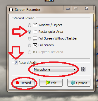 ধাপ ৩-আপনি এখন rectangular area তে ক্লিক করেন আর যদি ভয়েস রেকর্ড করতে চান তা হলে রেকর্ড অডিও তে মার্ক করে মাইক্রোফোন বা স্পিকার যেটা দিয়ে করতে চান সেটা তে ক্লিক করে দেন সেসে রেকর্ড লেখায় ক্লিক করেন।