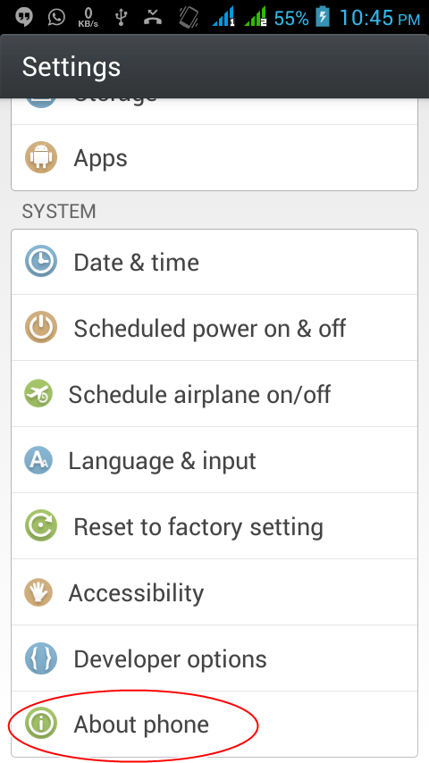 ♦প্রথমে আপনার অ্যান্ড্রয়েড ফোনের সেটিংস এ যেয়ে নিচের মত করে About Phone এ যান।